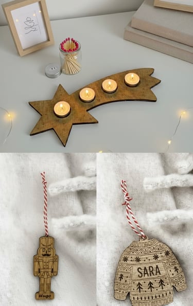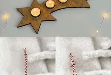 - 1 Cuatro deseos (estrella de madera con espacio para 4 velitas, perfecta para crear un ambiente acogedor y pedir deseos juntos en familia).